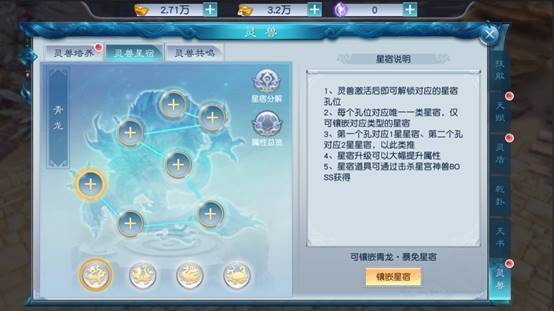1、在灵兽培养界面激活后即可解锁对应的星宿孔位。