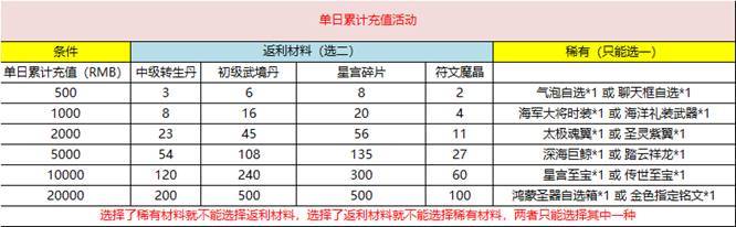 二、单日累充(单日达成即可领取)
